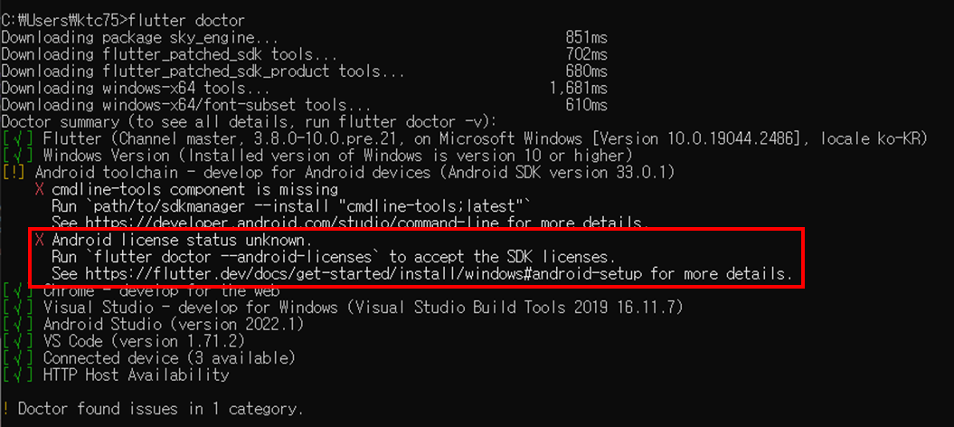 Flutter doctor 발생할 수 있는 기타 이슈 해결하기